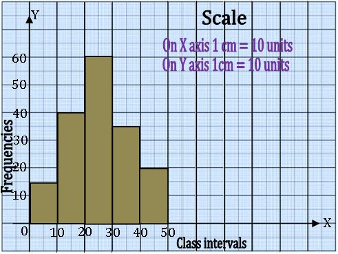 Step-4: Draw rectangle with class intervals as bases and the corresponding frequencies as the corresponding heights.