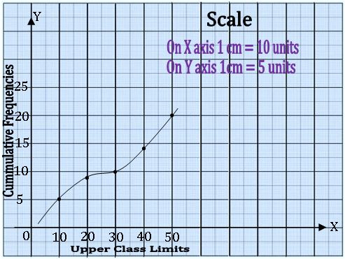 In order to represent a frequency distribution by an Ogive, we mark the upper class along X– axis and the corresponding cumulative frequencies along Y – axis and join these points by free hand curve, called Ogive.
