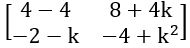 8 + 4k = 0, – 2 – k = 0 and –4 + k2 = 0
