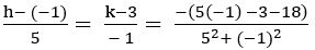 Let (h, k) be the foot of the perpendicular from (– 1, 3) on the straight line 5x – y – 18 = 0