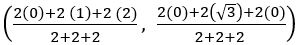 in centre of a triangle with sides a, b and c, whose vertices (x1, y1), (x2, y2) and (x3, y3) is