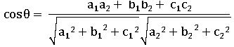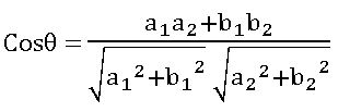 ∗ If θ≠π/2 is angle between the lines a1x + b1y + c1 = 0 and a2x + b2y + c2 = 0, then