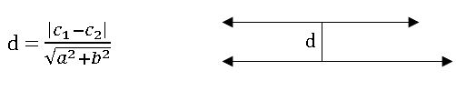 •The distance between the parallel lines ax1 + by1 + c1 = 0 and ax2 + by2 + c2 = 0 is