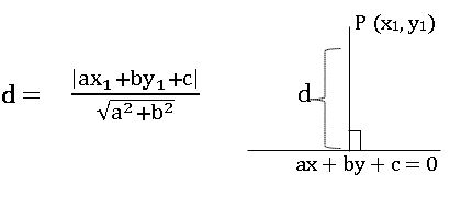 The perpendicular distance from a point P (x1, y1) to the line ax + by + c = 0 is