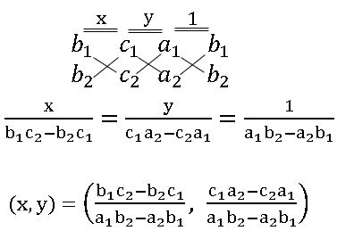 the point of intersection of two lines a1x + b1y + c = 0 and a2x + b2y + c = 0 is