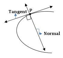 Let y = f(x) be a curve and P (x, y) be a point on the curve. The line passing through P and perpendicular to the tangent of the curve y = f(x) at P is called Normal of the curve.