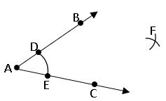 Step – 3: Taking D and E as the centres, draw two arcs with equal radii to intersects each other at F.